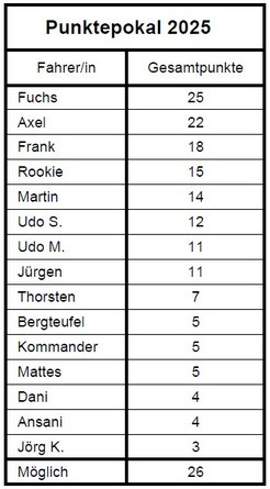 Für den Punktepokal werden die Sonntagsausfahrten in der Zeit